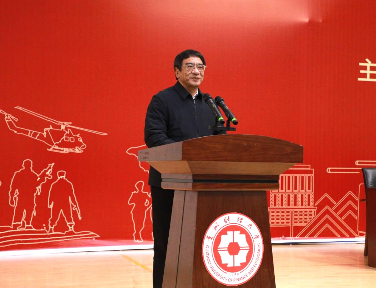 缪坤和代表承办单位致辞,并向出席开幕式的领导、来宾、全体参赛队员、教练员、裁判员表示热烈欢迎。他说,贵州财经大学历来重视国防教育工作,近年来,在贵州省征兵办、贵州省教育厅等单位的指导下,学校始终坚持以习近平新时代中国特色社会主义思想为指引,全面贯彻党的二十大精神,深入学习践行习近平强军思想,紧密围绕立德树人这一根本任务,大力实施新时代立德树人工程,秉持“大思政”理念,推动国防教育实现“大跃升”。本届活动周的举办,恰逢全民国防教育深化推进的关键节点;新征程上,贵州财经大学将深入贯彻落实国防教育各项决策部署,持续深化育人体系,推动国防教育与专业教学、校园文化、社会实践深度融合,不断推动爱国拥军成为校园新风尚。