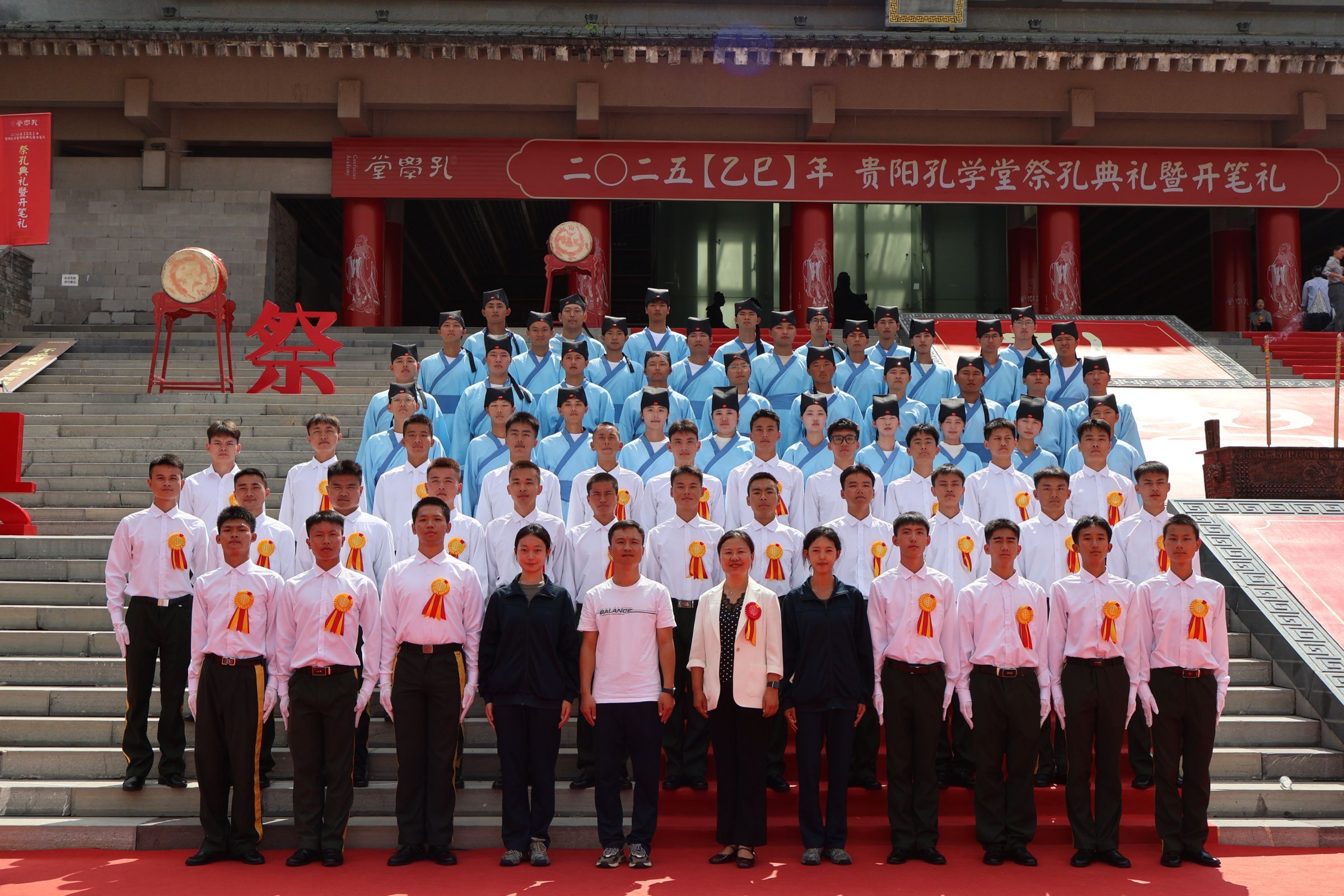 9月28日,受贵阳孔学堂文化传播中心邀请,我校国旗护卫队一行60名队员前往孔学堂,为2025(乙巳)年“祭孔典礼”暨开笔礼活动提供协助,以青春力量参与并见证了这一传统文化盛事。此次活动由学工部副部长文静、国护队指导老师肖亚带队。