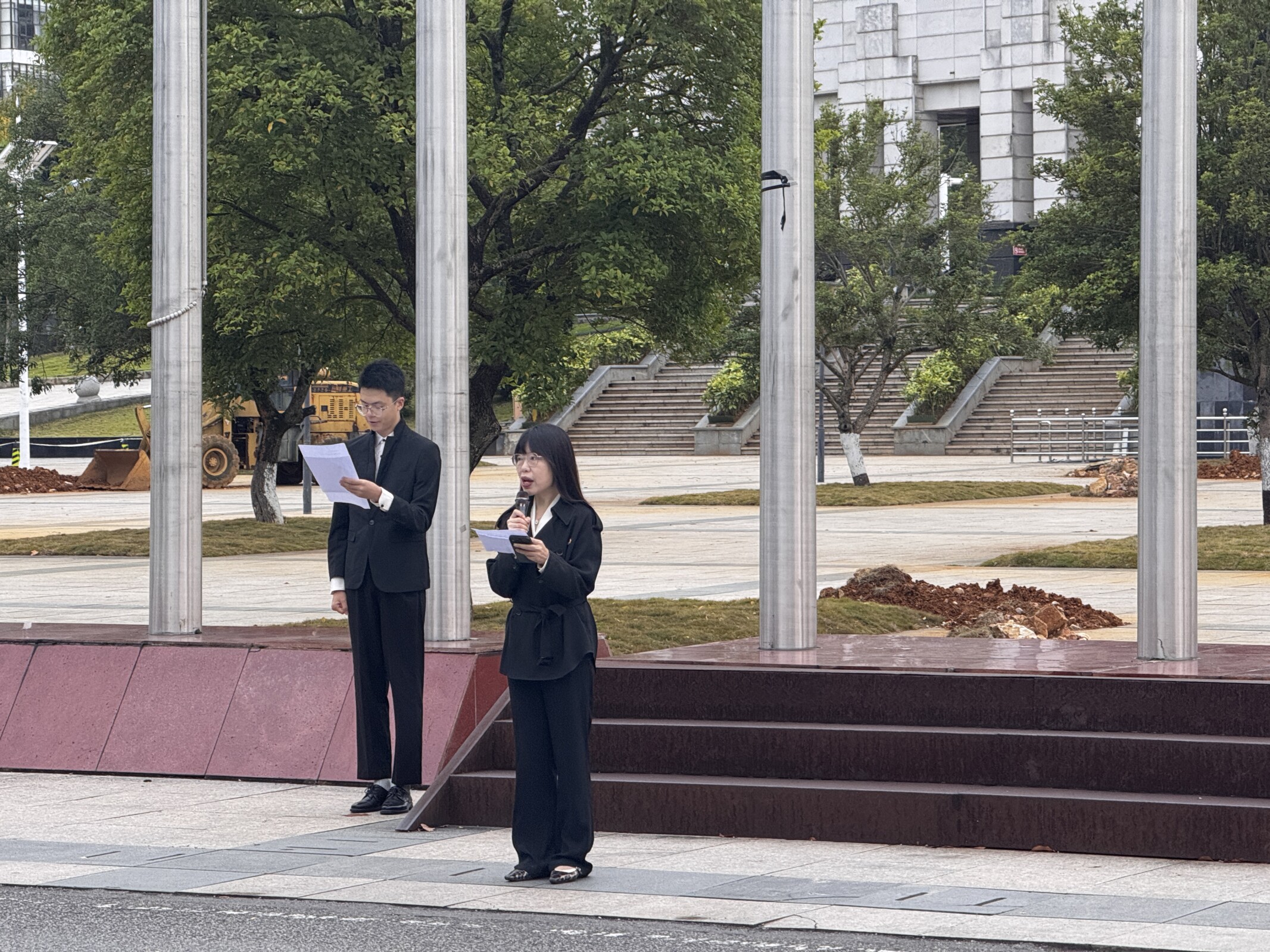 10月20日清晨7时整,我校在院士墙广场举行周一升旗仪式。本月由大数据统计学院承办,我校国旗护卫队队员以饱满状态完成升旗任务,用庄严仪式激发师生爱国情怀,凝聚奋进力量。